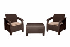 Мягкие подушки, стильный дизайн с фактурой плетения под искусственный ротанг, удобная спинка, широкие подлокотники с подстаканниками - это далеко не полный список особенностей комплекта.