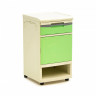 Модель предназначена для хранения личных вещей пациентов и может использоваться в качестве столика. Она оснащена столешницей, а также дополнительным выдвижным столиком с углублениями для стакана и столовых приборов.